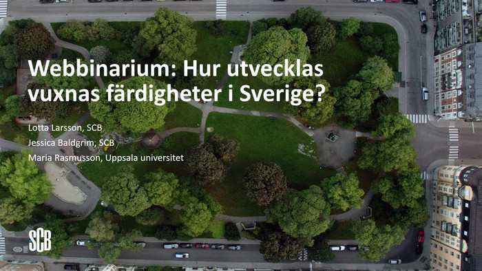 SCB:s experter Lotta Larsson och Jessica Baldgrim presenterar de senaste resultaten i Sverige och jämför dem med resultaten från den första undersökningen 2012. De svenska resultaten jämförs även med motsvarande undersökningar i 30 länder. Presentationen ger en fördjupad bild av vuxnas färdigheter i Sverige i relation till andra länder, vilka skillnader i färdigheter som finns inom befolkningen och vad det kan ha för betydelse på utbildnings- och arbetsmarknadsfrågor.